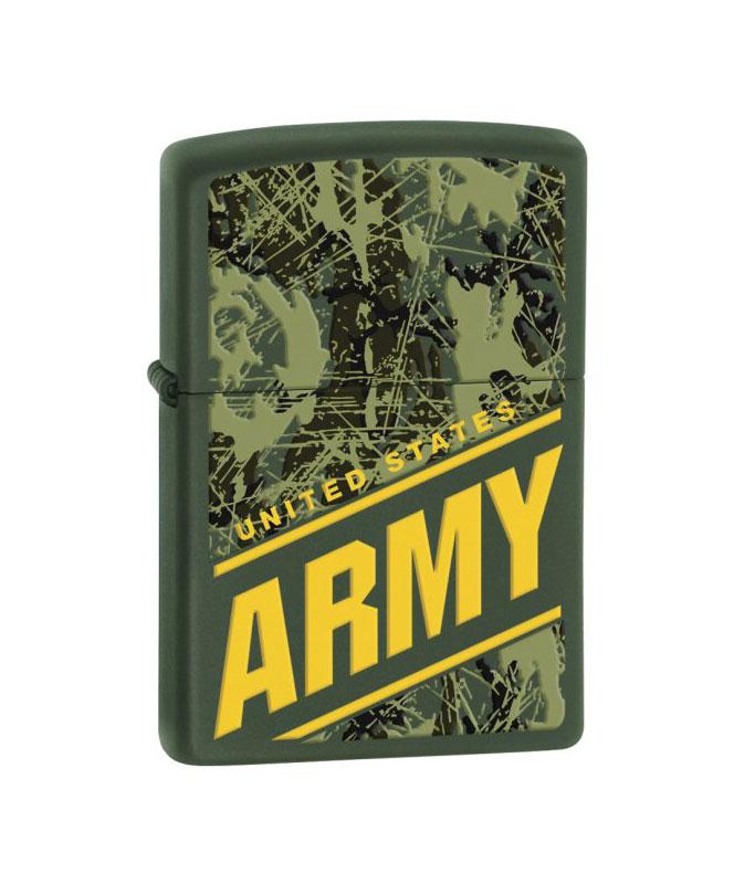This genuine Zippo lighter features a United States Army green camouflage design. This genuine Zippo lighter is windproof and features the unmistakable "click" of a real Zippo. Made in the USA with a lifetime guarantee. Zippo comes packaged in an environmentally friendly gift box. Lighter measures approximately 1.5 inches by 2.25 inches by 0.5 inches.
